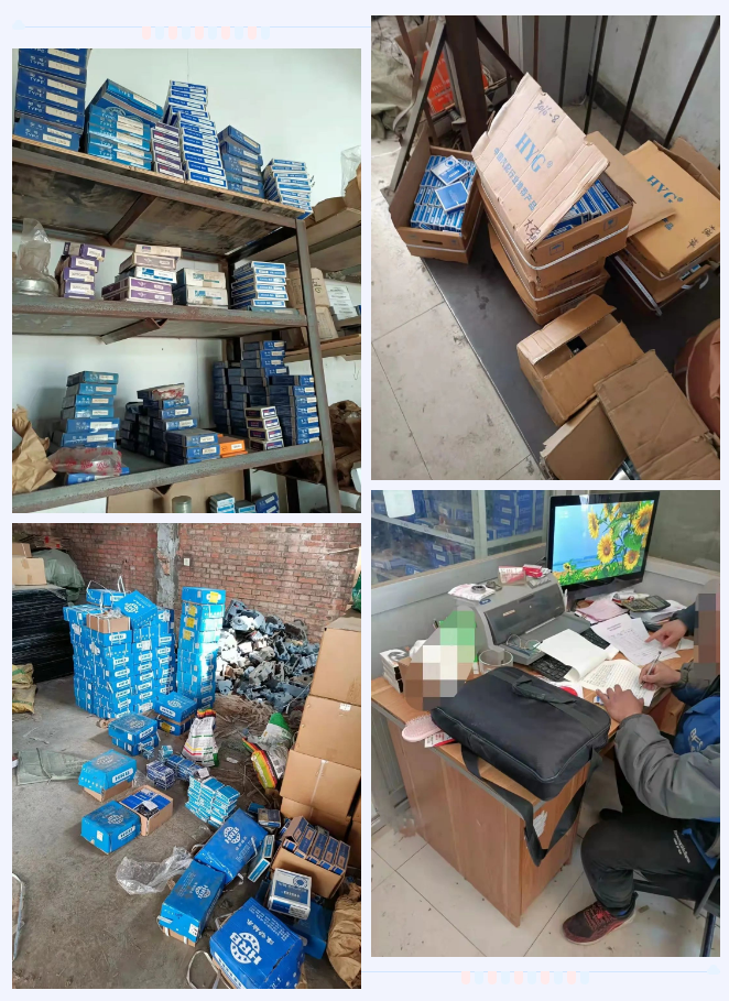 在天津市南開五金城對三家商鋪進行市場巡查,查獲假冒HRB軸承全部由當地市場監督管理局扣押封存,此次行動在當地產生巨大