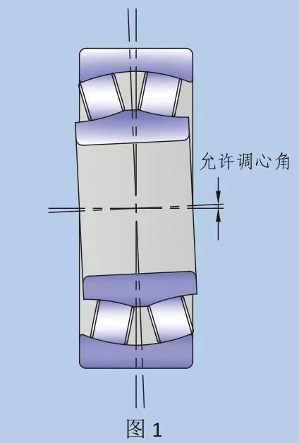 調(diào)心滾子軸承的設計,令其具有自動調(diào)心功能,即軸承本身可調(diào)節(jié)內(nèi)、外圈間的角度對準誤差。在正常載荷及工作條件下,內(nèi)圈轉(zhuǎn)動時,容許存在右表中給出的不對心值。